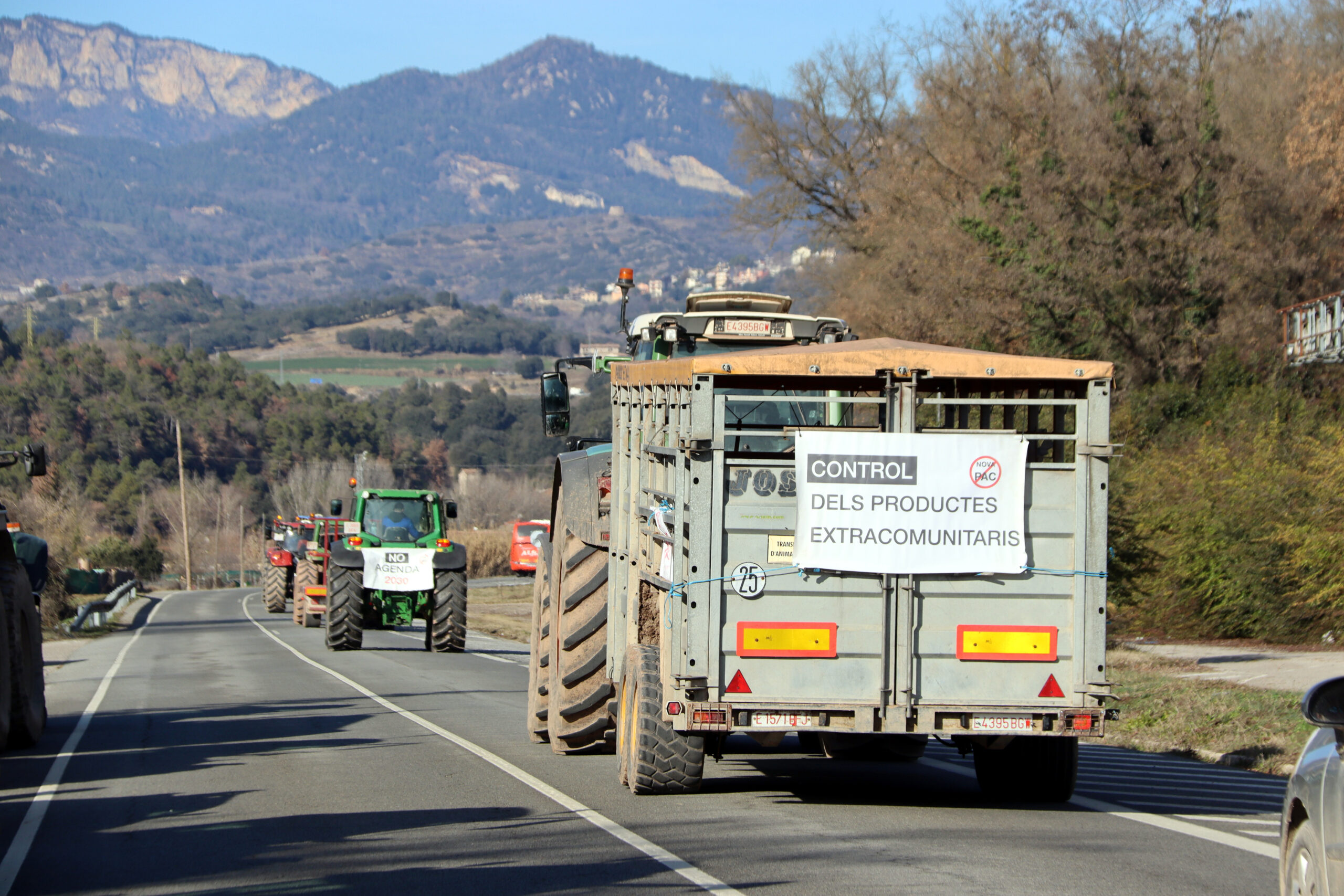ACN Berga – Una seixantena de tractors i desenes de pagesos es concentren des d’aquest dijous al migdia a l’enllaç entre l’Eix del Llobregat (C-16) i l’Eix del Lluçanès (C-62) a l’espera del que pugui passar amb l’acord entre la UE i Mercosur. De moment, els pagesos no tenen intenció de tallar cap carretera aquest dijous i han muntat carpes i barbacoes per passar-hi la nit. Els agricultors han penjat una gran pancarta a un pont de la C-16 a Olvan on es llegeix ‘La nostra fi, la vostra fam’. Els tractors han arribat de diverses comarques com Osona, l’Anoia, el Bages, el Lluçanès, el Moianès i el Berguedà. Els preocupa especialment l’impacte que pot tenir l’acord UE-Mercosur al sector boví, ja que pensen que s’abaratiria molt el preu de la carn.