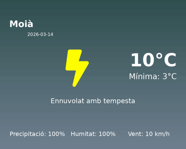 Predicció Meteorològica per a Moià – 14 de març de 2026