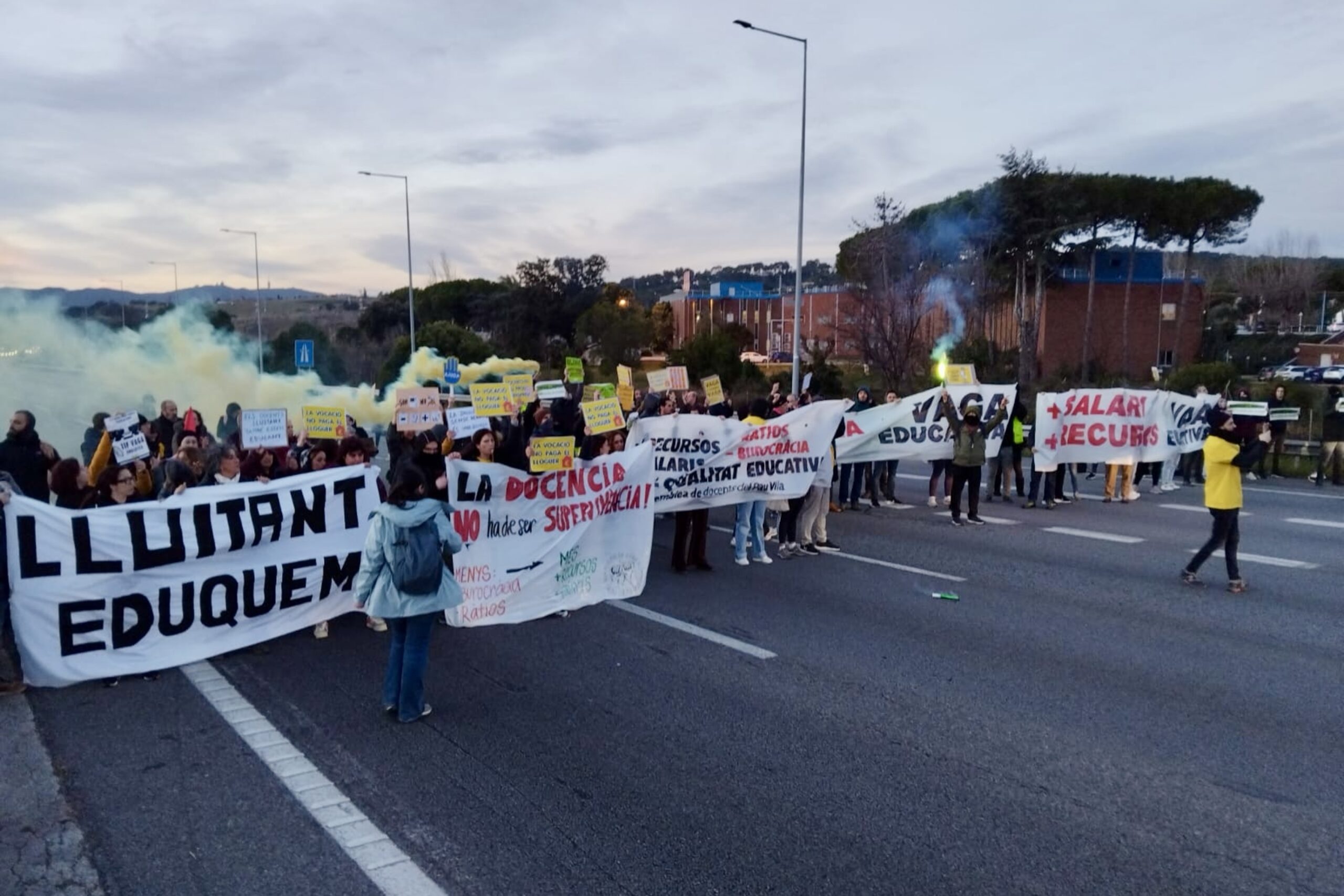 Les protestes es produeixen en el marc de la vaga convocada aquest dimecres pels sindicats educatius per reclamar millores laborals, salarials i educatives. Entre les seves principals reclamacions hi ha un increment del sou, abaixar les ràtios i dotar de més recursos l’escola inclusiva.