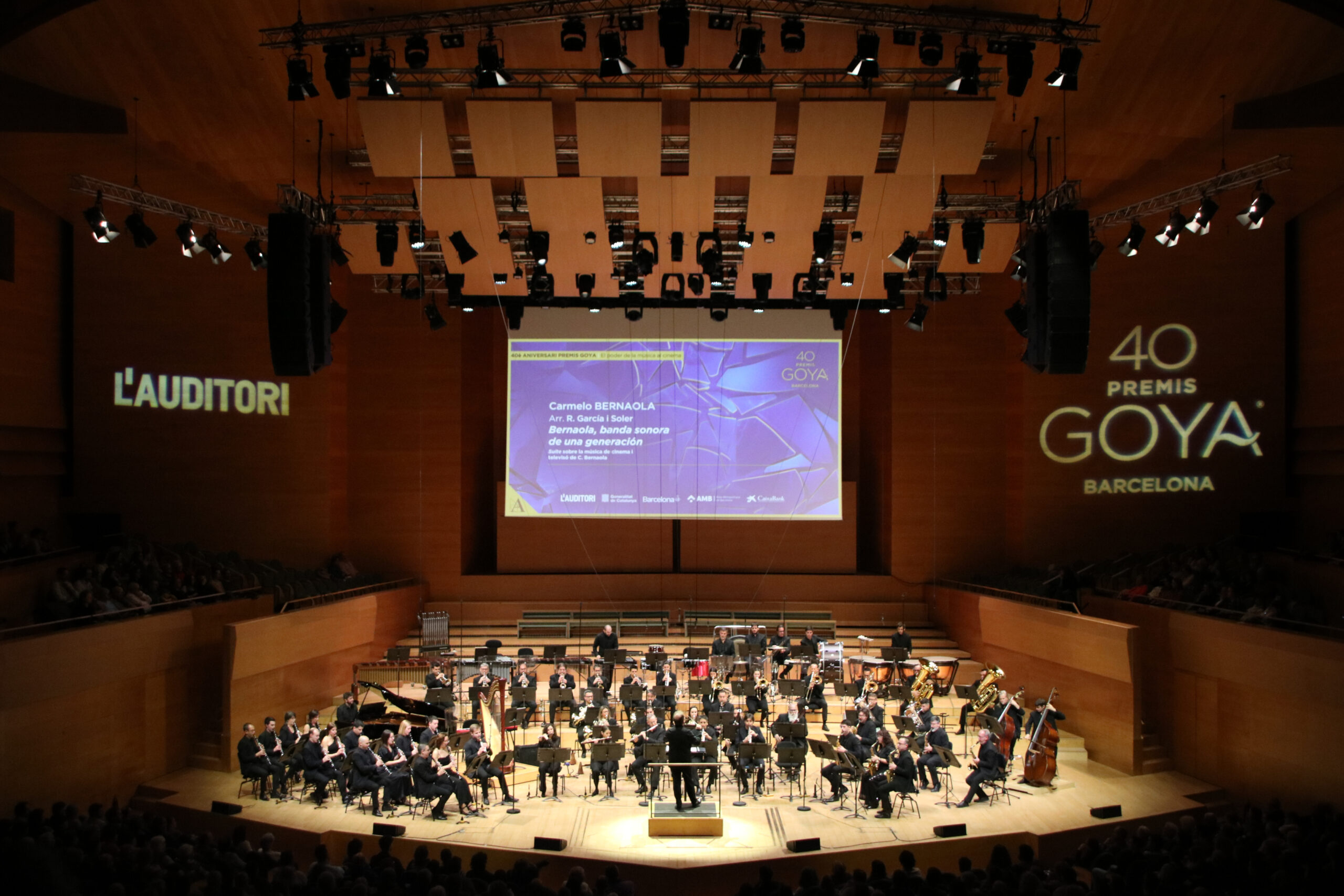 ACN Barcelona – La Banda Municipal de Barcelona (BMB) ha portat aquest diumenge a la sala Pau Casals de L’Auditori les bandes sonores emblema dels Premis Goya per commemorar el 40 aniversari del guardó. El concert ‘El poder de la música al cinema’ ha recorregut les obres musicals que han obtingut el reconeixement de l’Acadèmia de cinema espanyol a les 39 gales prèvies dels premis, des de la ‘Fanfàrria’ d’Antón García Abril fins a títols com ‘El 47’. L’actriu Victoria Luengo ha actuat com a mestra de cerimònies d’un programa “eclèctic” que ha reivindicat la versatilitat dels instruments de vent per recrear l’univers de la narració audiovisual, segons ha explicat a l’ACN el director de la BMB, José R. Pascual-Vilaplana.