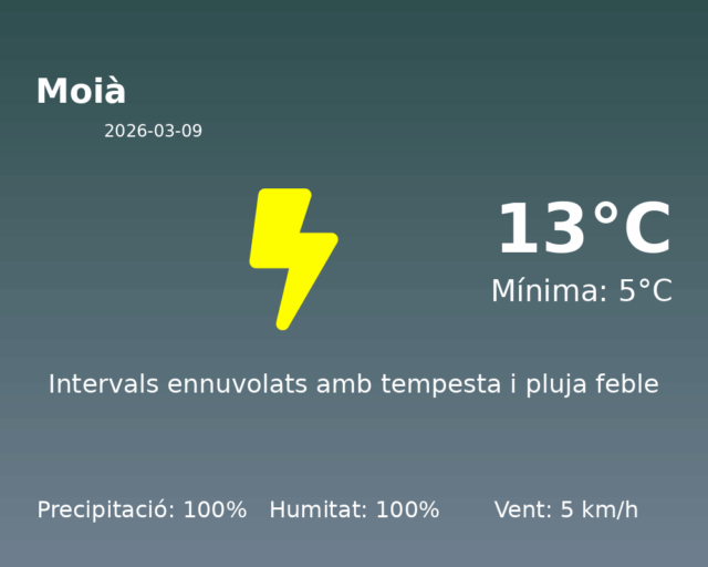 Predicció del Temps a Moià pel 9 de Març de 2026
